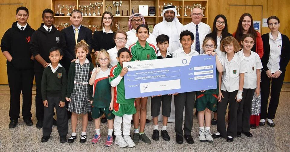 Park House English School presented a cheque for QR31,700 to the Qatar Diabetes Society. Park House English School is passionate about supporting International Diabetes Day (Blue Day). The students took part in a variety of tasks to raise money towards this cause – anything from blue stationery to blue hair and much more were on sale. We are proud to have tremendously supportive parents that donated healthy lunchboxes for the PTA to sell. Thanks to the overwhelming support by all, we were able to raise a record-breaking amount this year.